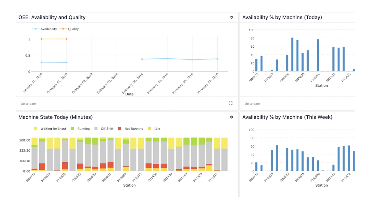 One of the best ways to actively use your OEE data is by integrating modern platforms into your manufacturing operations.  Platforms like Tulip can change how manufacturers use OEE. Tulip’s OEE dashboards are designed to move beyond reporting and into execution.  Instead of showing isolated numbers, they connect machine data, operator inputs, and contextual information into a real-time view of performance.